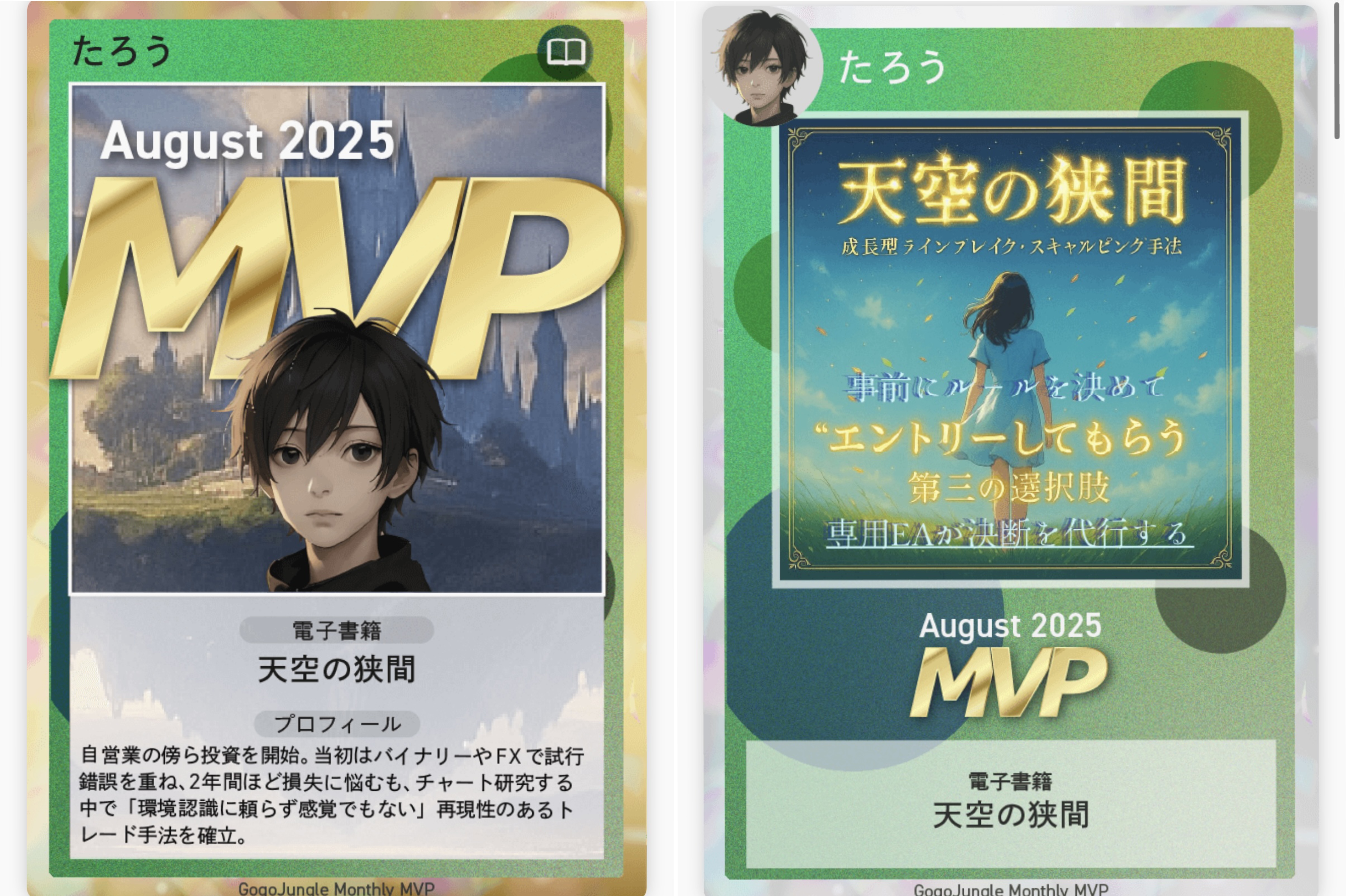 分不相応ながら、このたび 8月度のMVP に選んでいただきました。