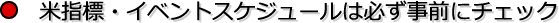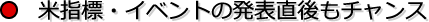 米指標・イベントスケジュールは必ず事前にチェックしておいて下さい。チャンスが巡ってくる時間帯を把握しておくことで効率よく利益を積み上げていけるかと思います。
