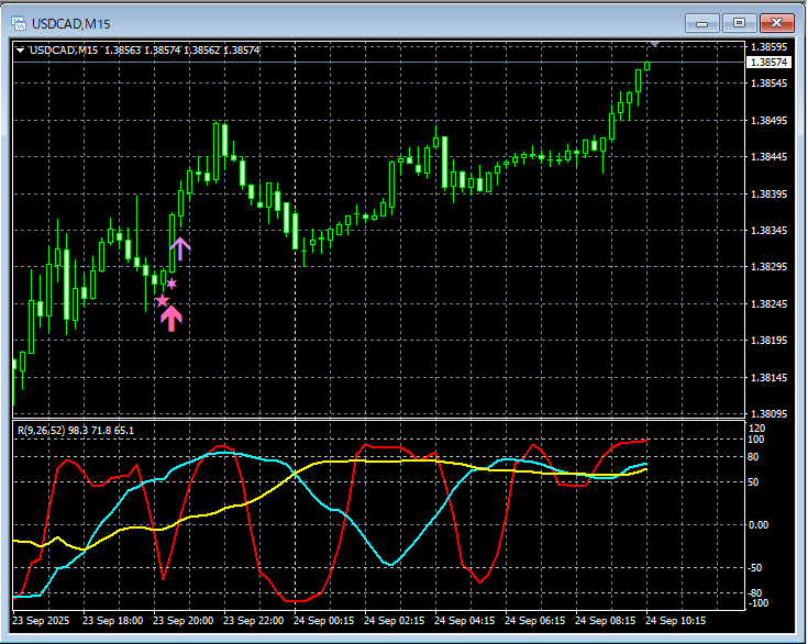 質実剛健FX mBDSR(RCI2本フィルター)のサインとR1R2S2のサインの両方を活用する(54) ドルカナダ 15分足