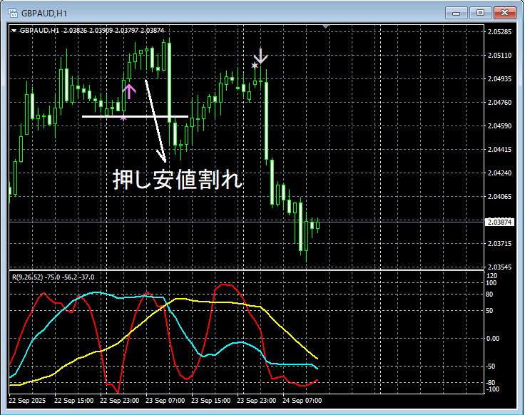 【RCIを極めて勝つ!!】押し安値割れとR1R2S2のサイン ポンドドル 1時間足