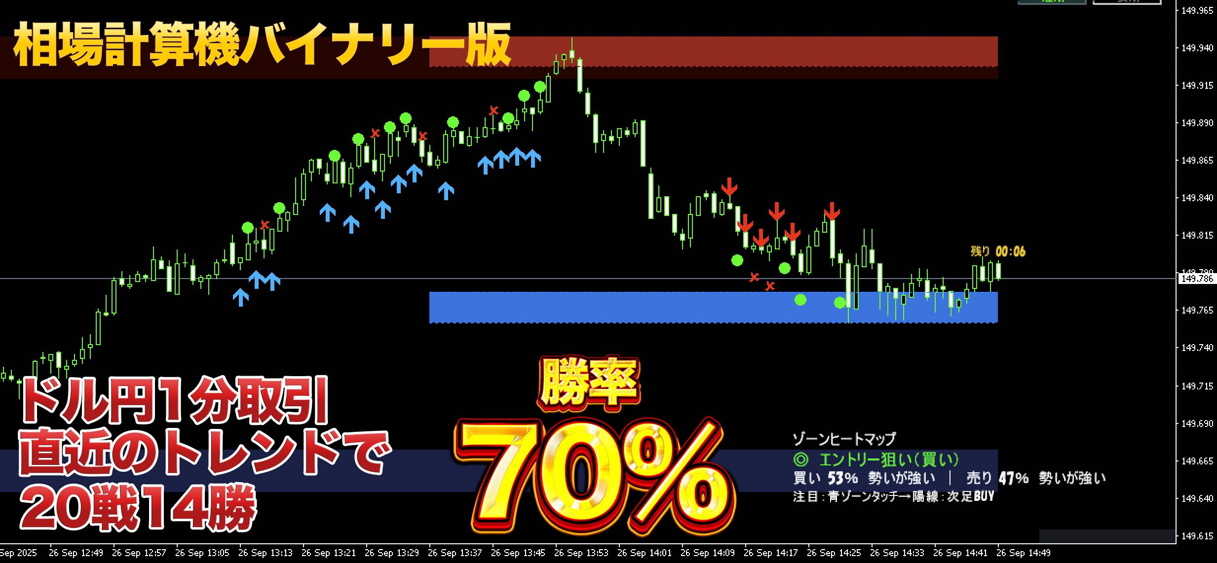 - 例:「青ゾーンにタッチ → 次足BUY」