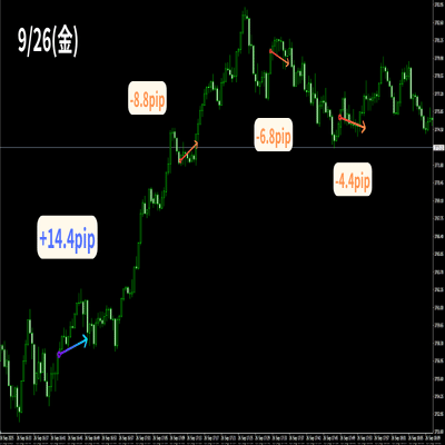 【9月26日】30秒足GOLD無裁量スキャルピングのトレード結果