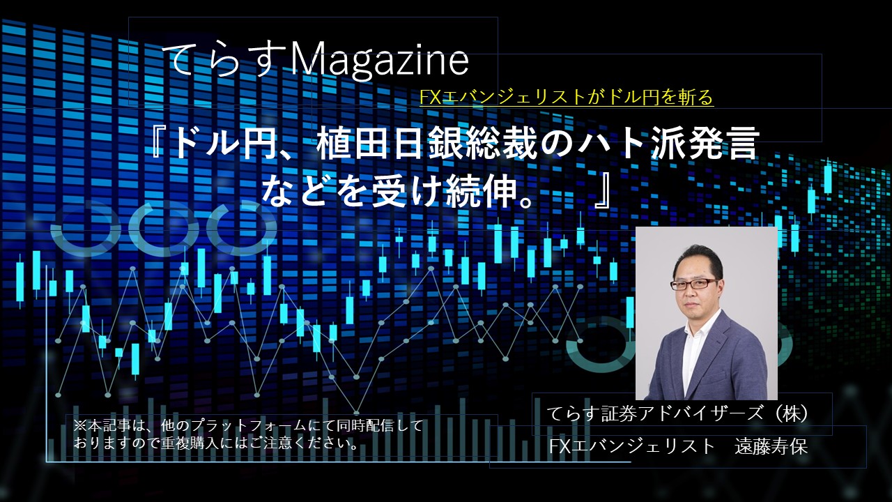 ドル円、植田日銀総裁のハト派発言などを受け続伸。