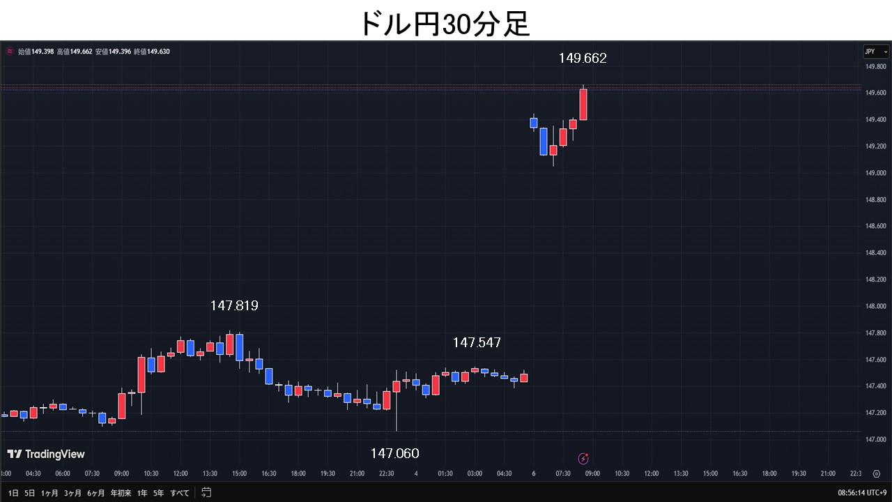 ドル円は、一時146.60円まで下落となるが、5日ぶりに反発。