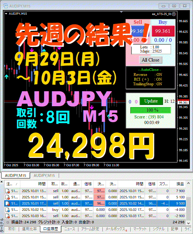 M15 週間報告!【AUDJPY】ATS-25 ☆10月6日(月)~10月10日(金)