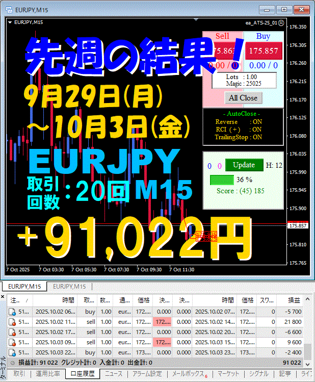 M15 週間報告!【EURJPY】ATS-25 ☆10月6日(月)~10月10日(金)