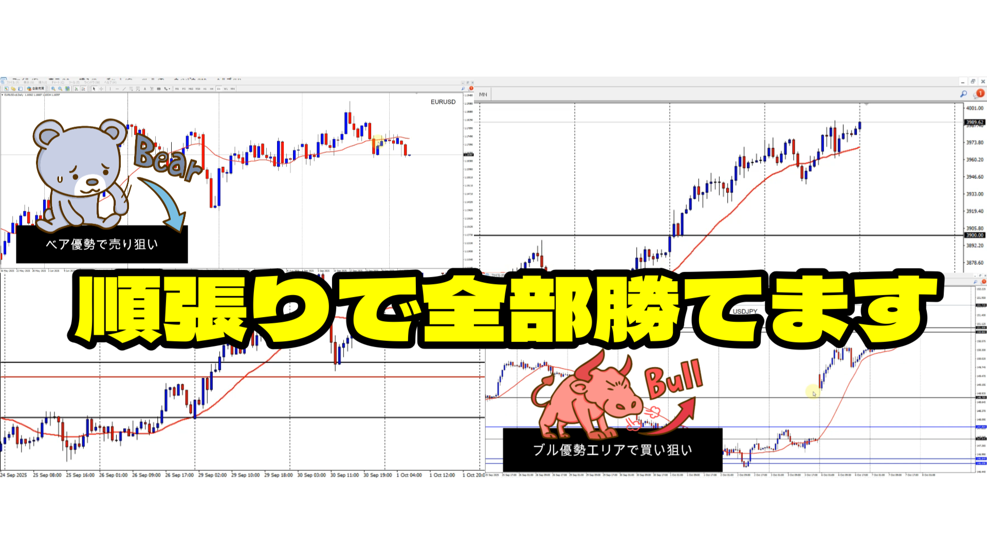 いまの相場で、実際に同じ型を繰り返すトレードを日々解説中。