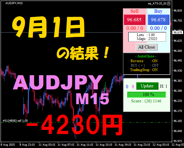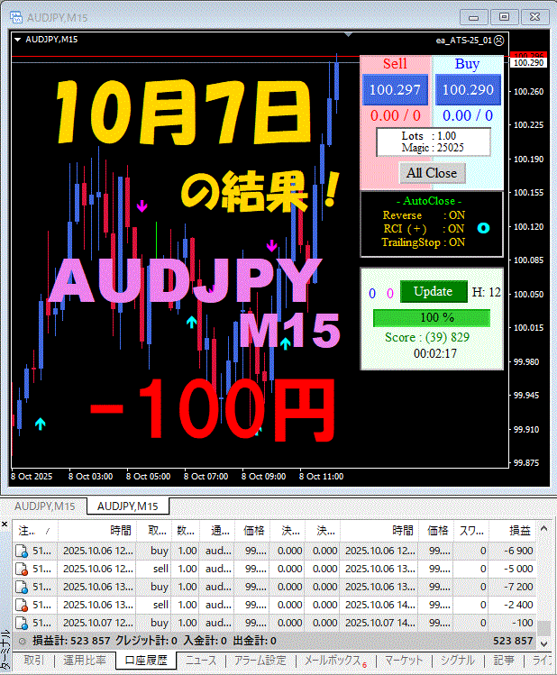 【AUDJPY M15】前日の結果『ATS-25』 10月7日