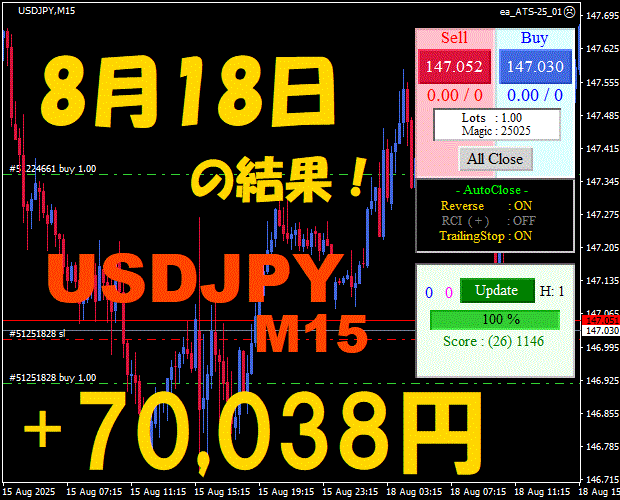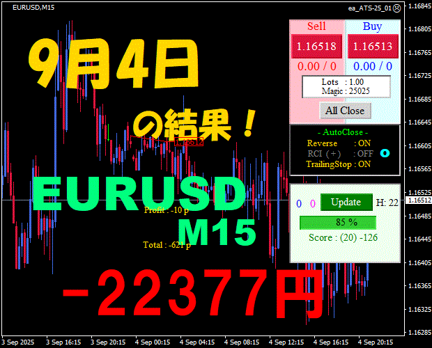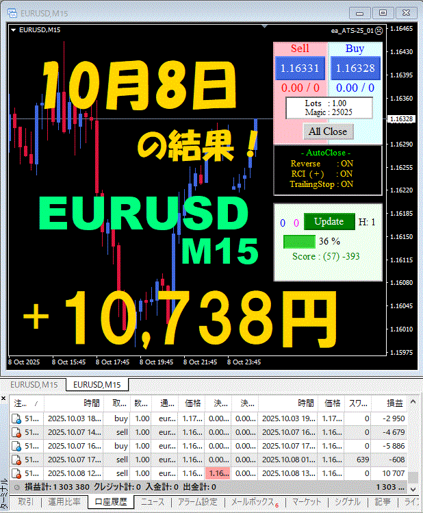 【EURUSD M15】前日の結果『ATS-25』 10月8日