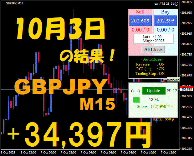 【GBPJPY M15】前日の結果『ATS-25』 10月8日
