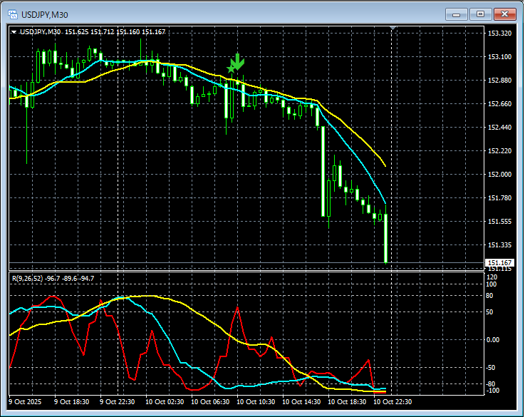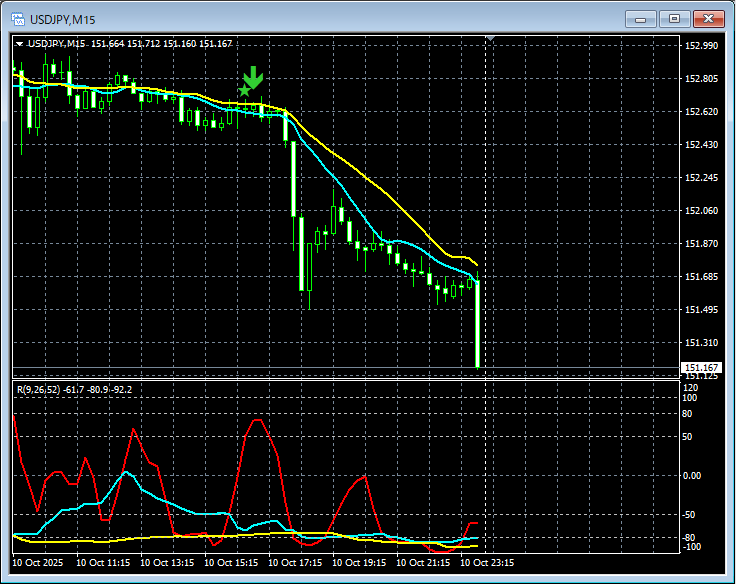 【RCIを極めて移動平均線フィルターで勝つ!!】昨日のドル円30分足と15分足におけるmBDSRのサイン