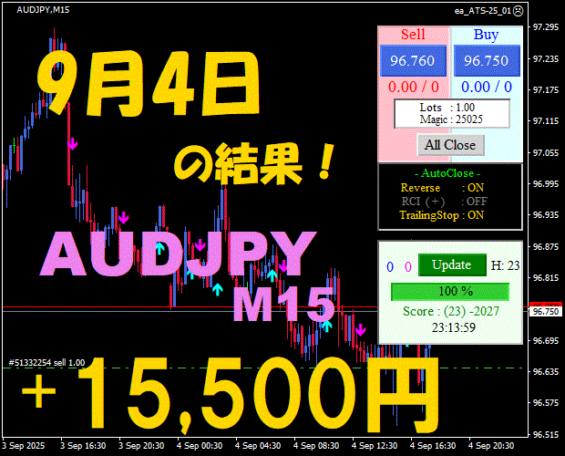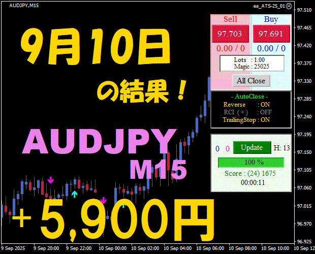 【AUDJPY M15】前日の結果『ATS-25』 10月10日
