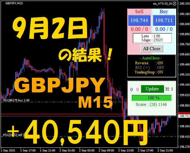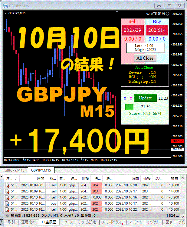 【GBPJPY M15】前日の結果『ATS-25』 10月10日