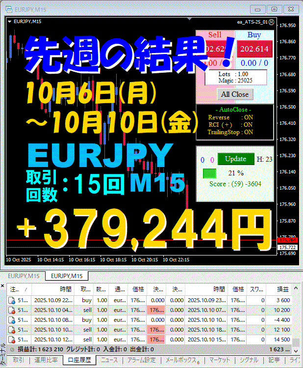 M15 週間報告!【EURJPY】ATS-25 ☆10月6日(月)~10月10日(金)