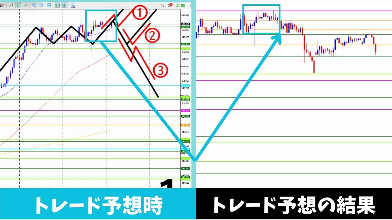 波動マスターFXの『超絶シンプル手法』の電子書籍内に勝率80%を超える相場予想のやり方も公開しておりますので、ご購入者の方もマネするだけで、下記と同じ相場予想が立てられるようになります。