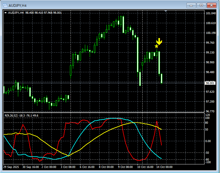 【RCIを極めて勝つ!!】豪ドル円 4時間足 mBDSRの戻り売りサイン
