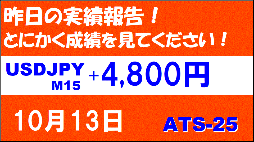 【USDJPY M15】前日の結果『ATS-25』 10月13日