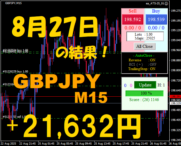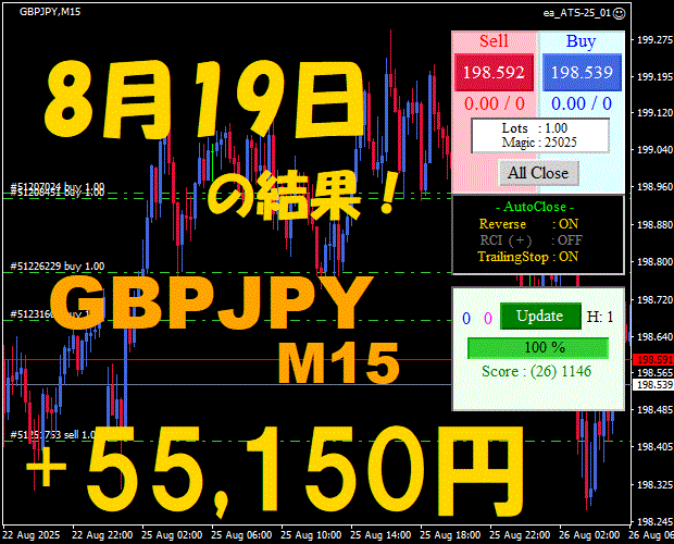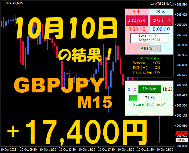 【GBPJPY M15】前日の結果『ATS-25』 10月13日