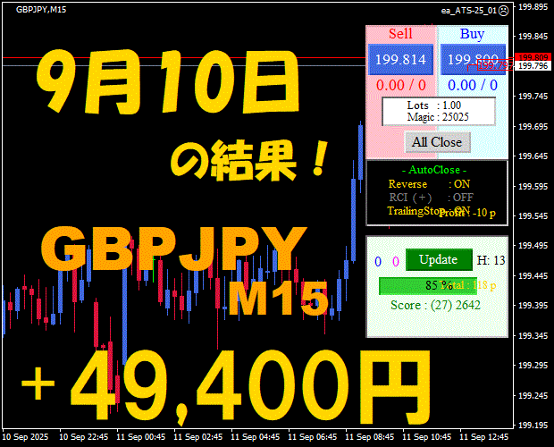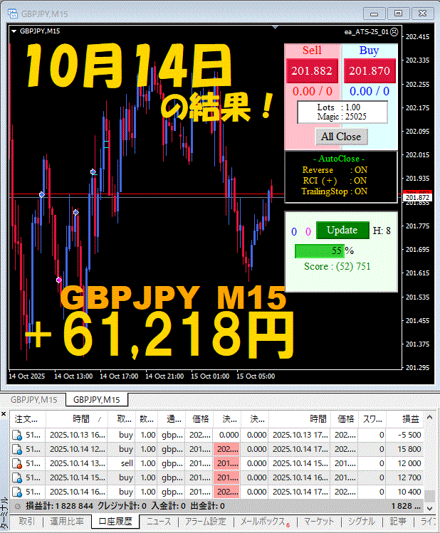 【GBPJPY M15】前日の結果『ATS-25』 10月14日