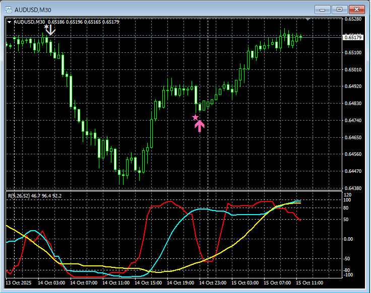 質実剛健FX mBDSR(RCI2本フィルター)のサインとR1R2S2のサインの両方を活用する(60) AUDUSD 30分足