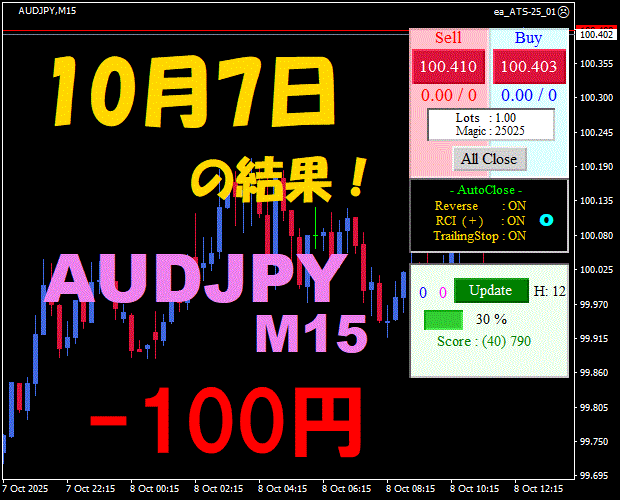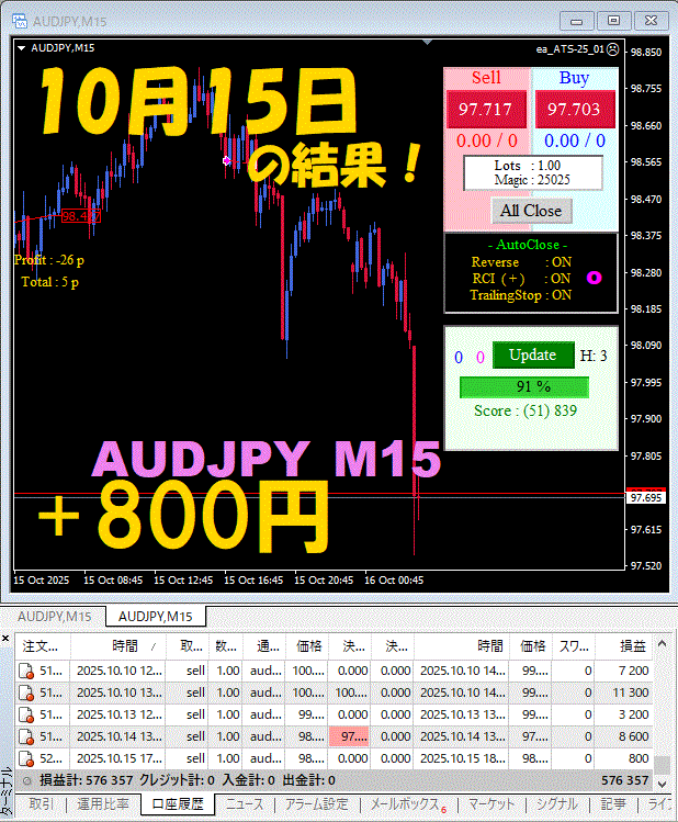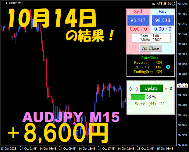 【AUDJPY M15】前日の結果『ATS-25』 10月15日