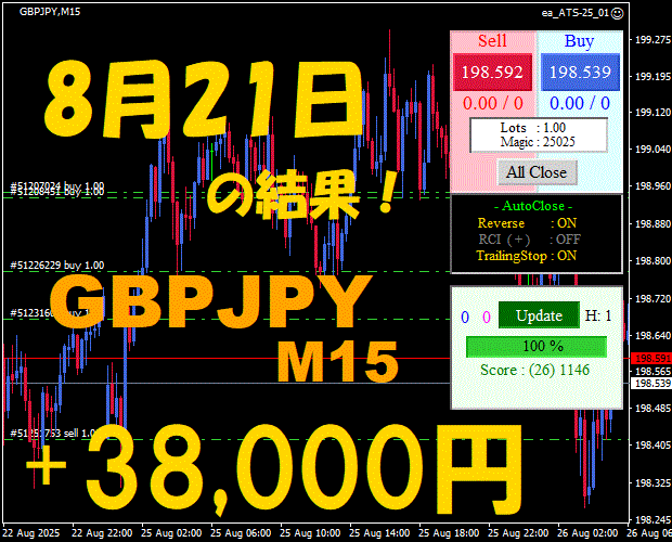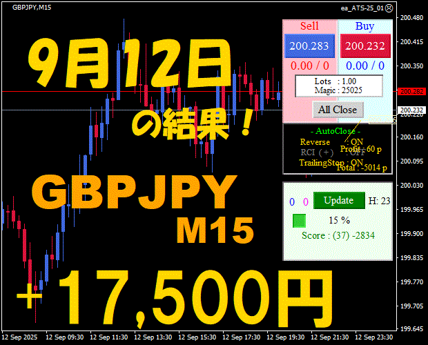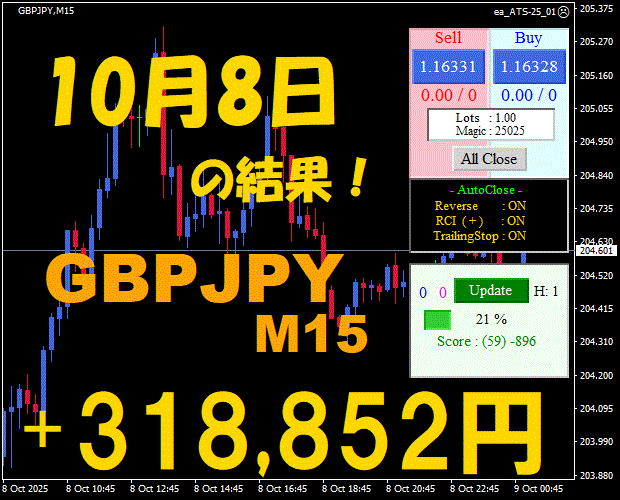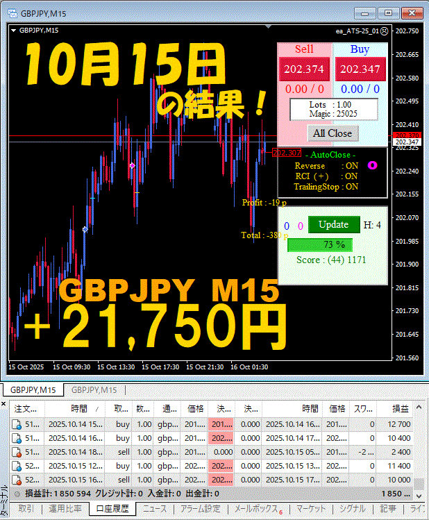 【GBPJPY M15】前日の結果『ATS-25』 10月15日