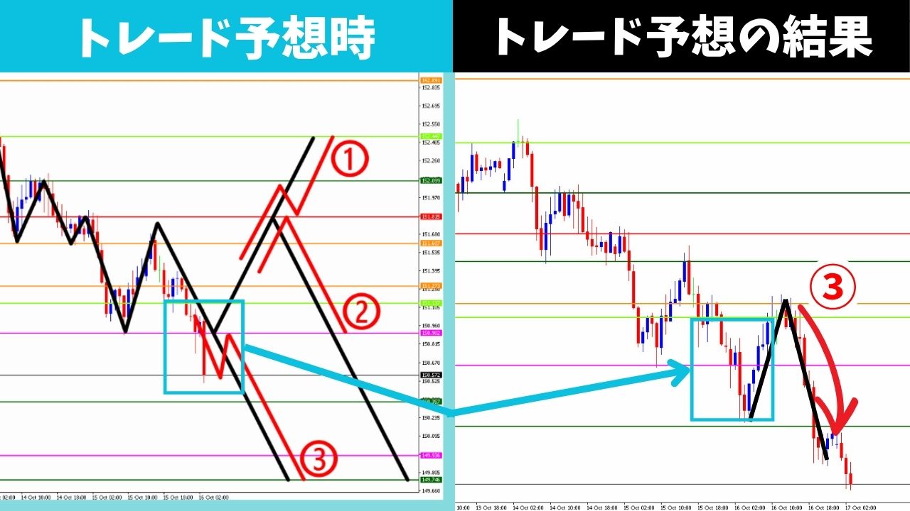 前回(2025年10月16日木曜日)のトレード予想の結果は以下になります。