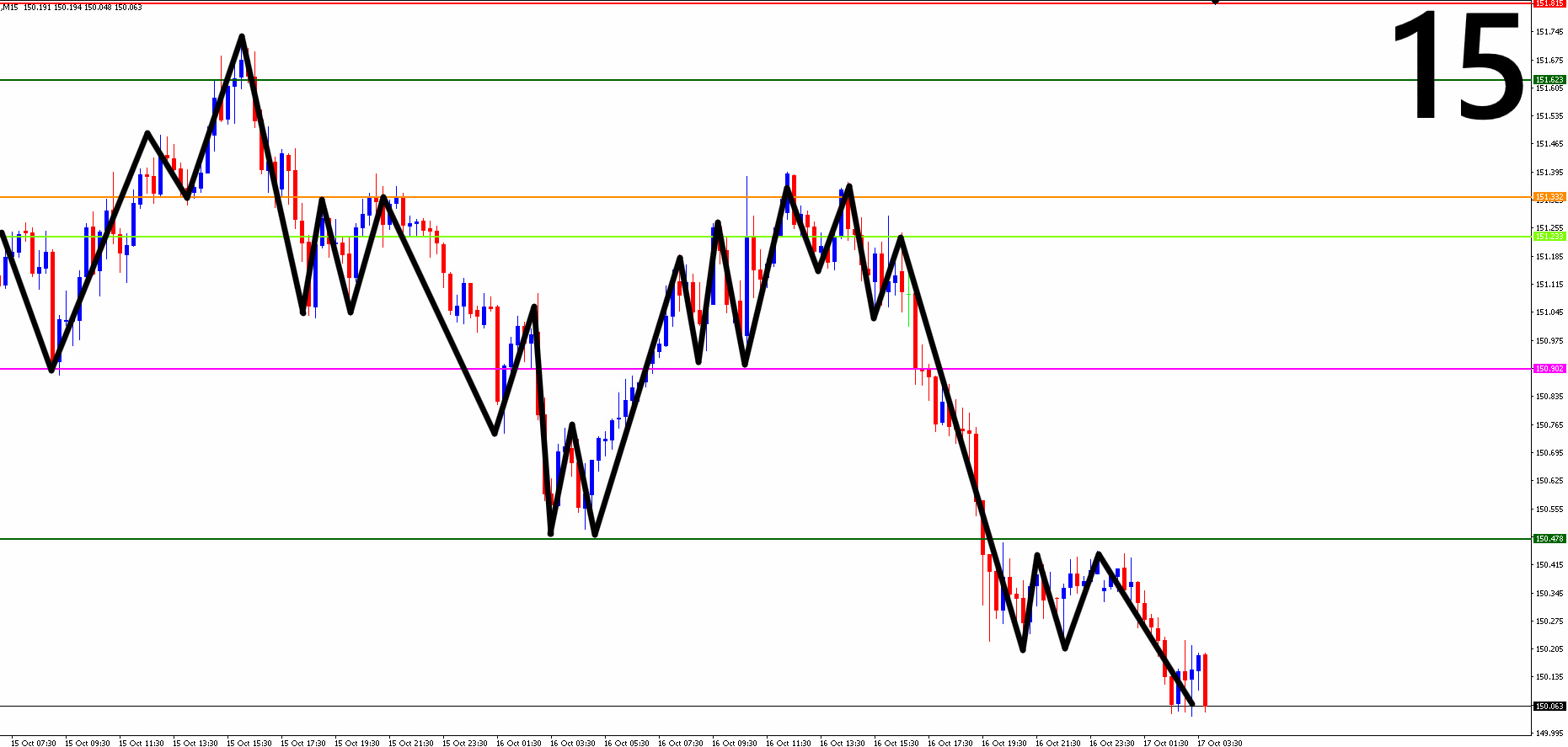 ●日足・4時間足・1時間足・15分足までの相場を水平線と波動(ダウ理論)を使って環境認識し、勝率の高いエントリーポイントを3つに絞る