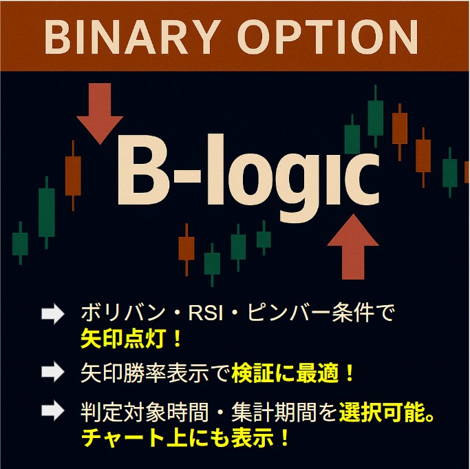 「B_logic」は、15秒・30秒・1分チャートにも対応したMT5専用インジケーターです。 同時にインジケーターが導入可能な自動秒足チャート形成EAと組み合わせることで、バイナリーオプションの短期反転を視覚的に捉え、裁量判断を強力にサポートします。