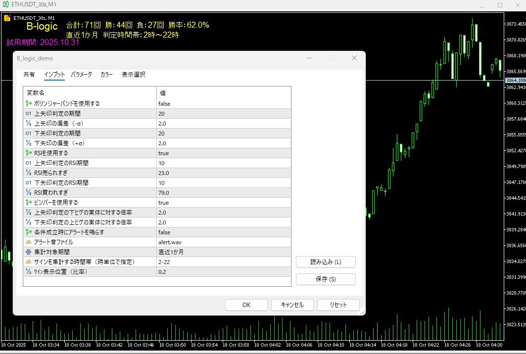 柔軟なパラメーター設定:各ロジックの期間・閾値・比率などを自由に調整可能