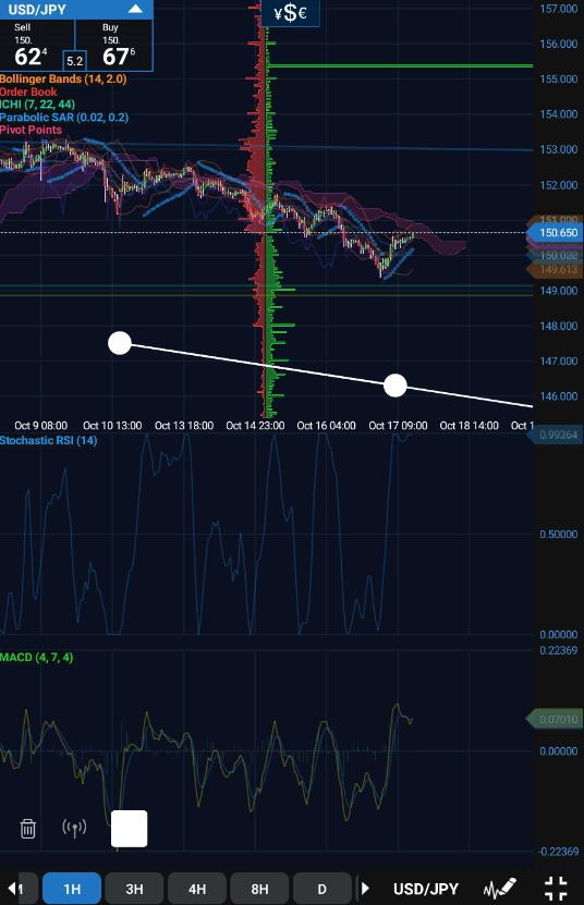では、今週(10月19日〜10月25日)のドル円の動きを、チャートをもとに一緒に見ていきましょう。(簡単にやります。)