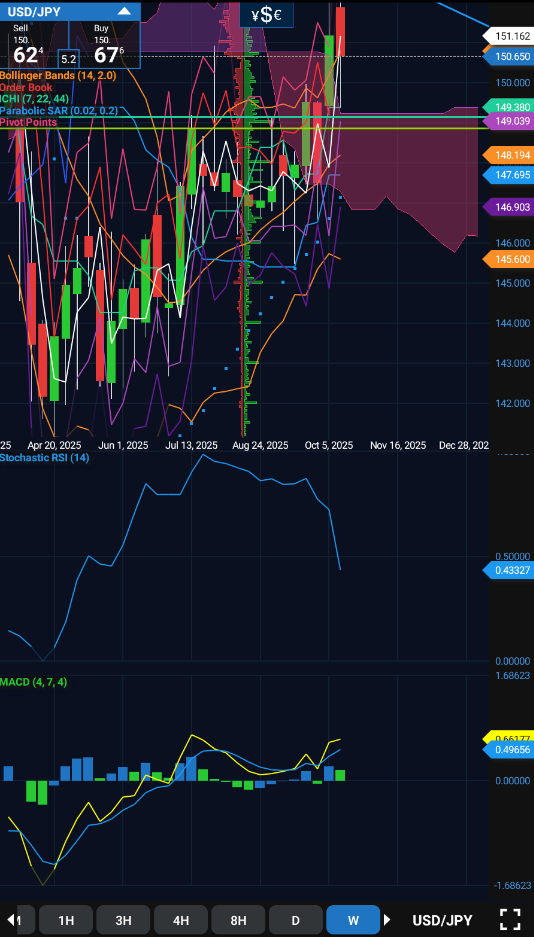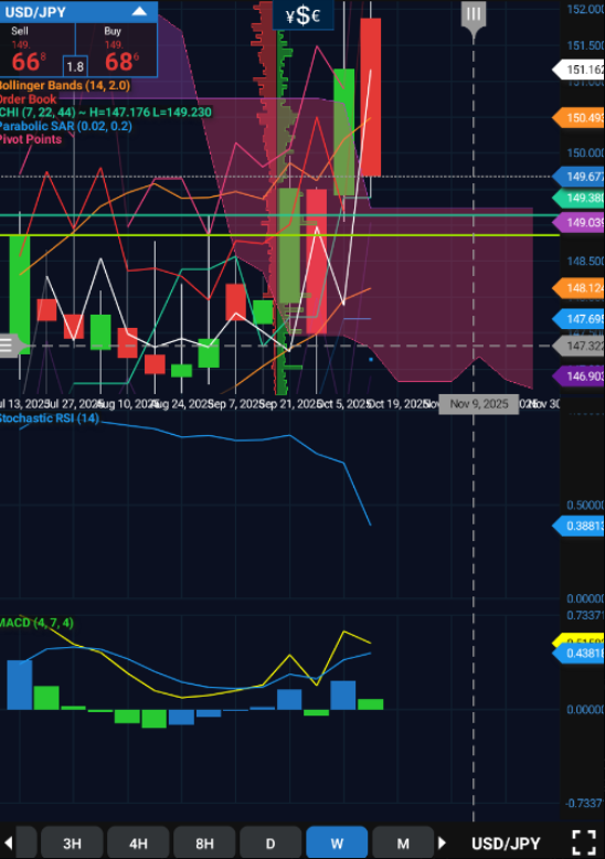 今週の戦略: WEEKLYの147.880が最終的に降りつく値ではありますが、今週のWeeklyは新しくローソク足がたされるので、まずは動いた値を見て置くことをし、