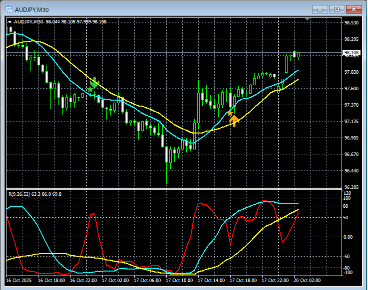 【RCIを極めて移動平均線フィルターで勝つ!!】豪ドル円 30分足におけるmBDSRのサイン