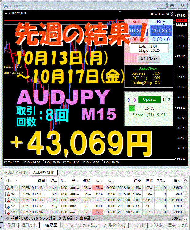 M15 週間報告!【AUDJPY】ATS-25 ☆10月13日(月)~10月17日(金)