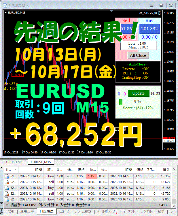 M15 週間報告!【EURUSD】ATS-25 ☆10月13日(月)~10月17日(金)
