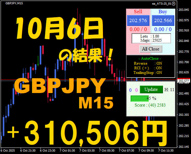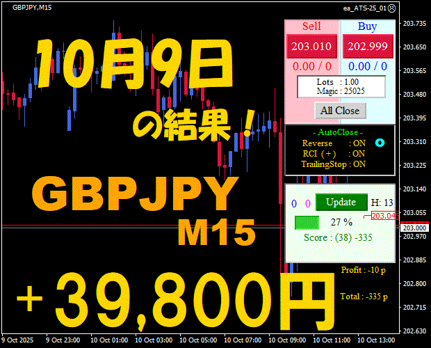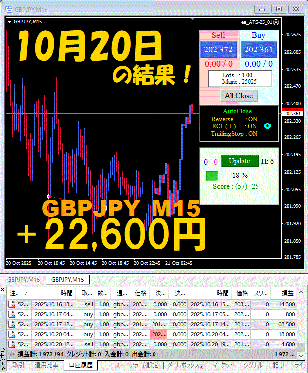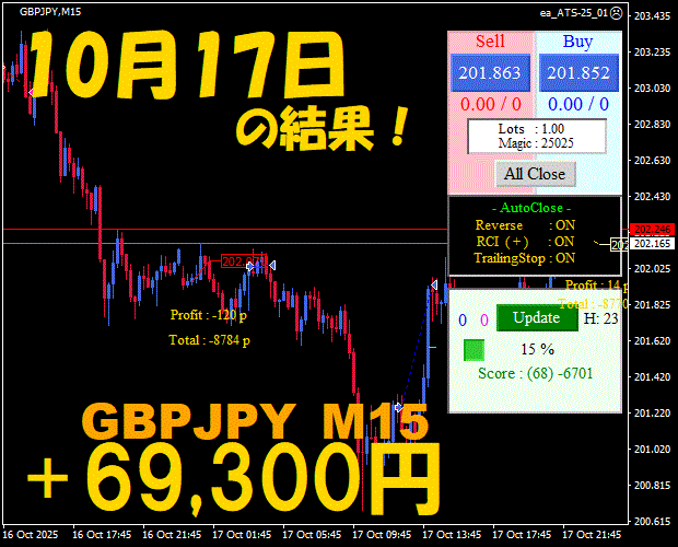 【GBPJPY M15】前日の結果『ATS-25』 10月20日