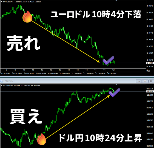 【lucky式】天地爆速!知らないと一生勝てない!今朝の10時4分の下落がドル円上昇を教えていた!?
