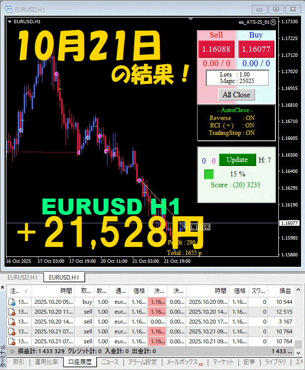 【前日の結果】EURUSD H1 / M5 『ATS-25』10月21日