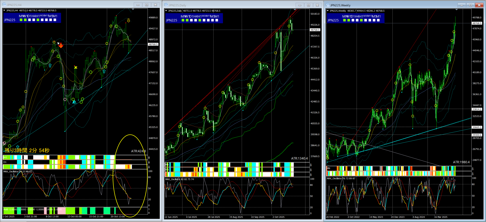 日足のMAXオシレーター・シンクロバンドは現在は「中立」に変化