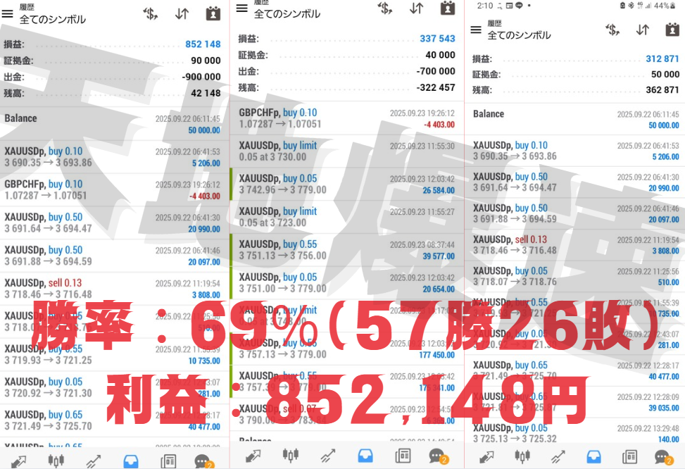 利益はすべて出金し、再び5万円スタート という形を取ったところ。