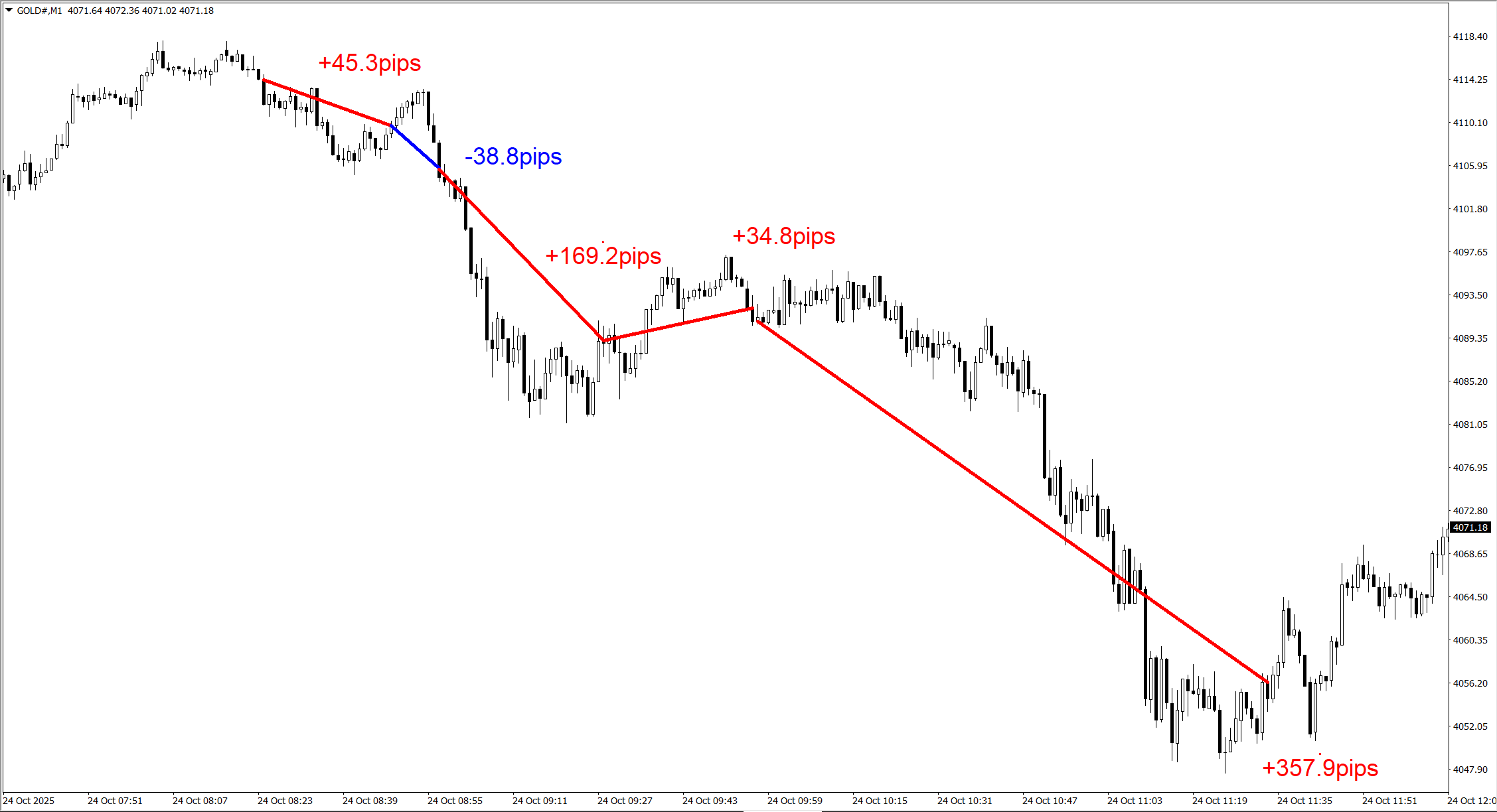 約3時間のトレードで、合計+568.4pipsの利益となりました。