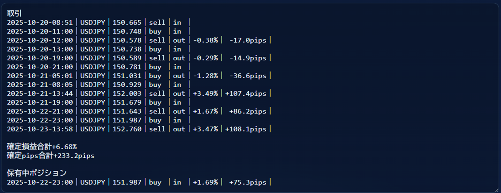 2025-10-22-23:00|USDJPY|151.987|buy |in |+1.69%| +75.3pips|