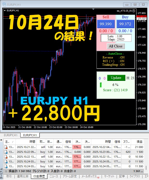 【前日の結果】EURJPY H1 / M5 『ATS-25』10月24日