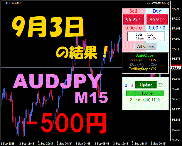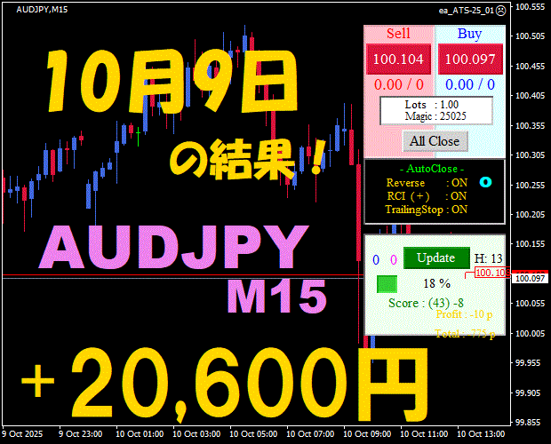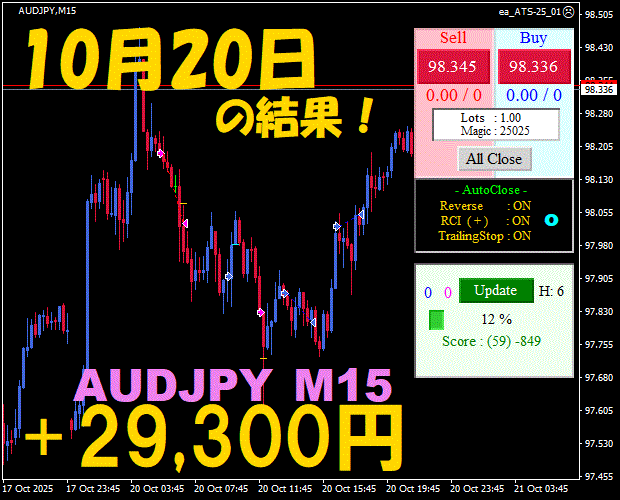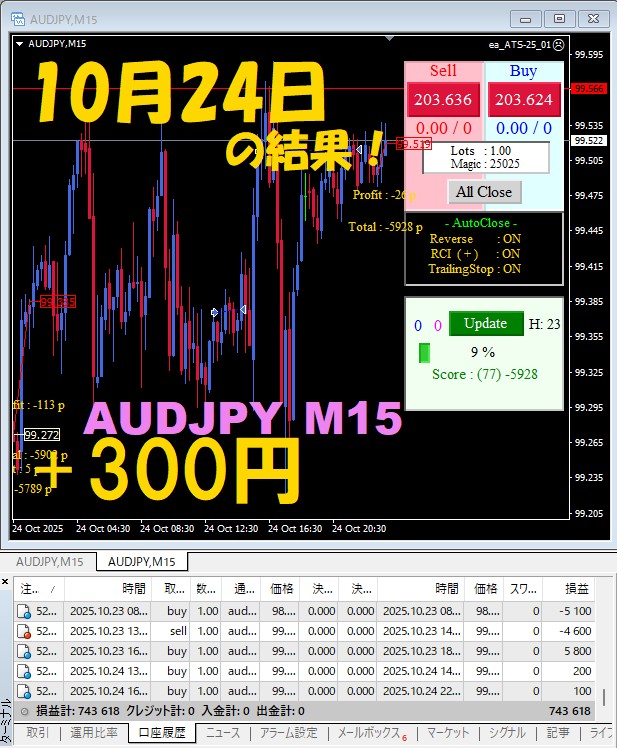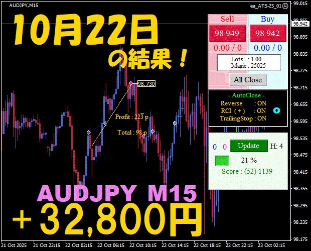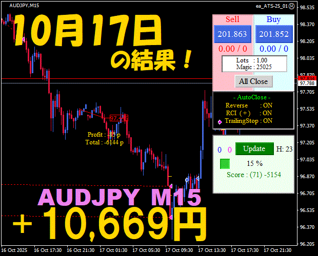 【AUDJPY M15】前日の結果『ATS-25』 10月24日