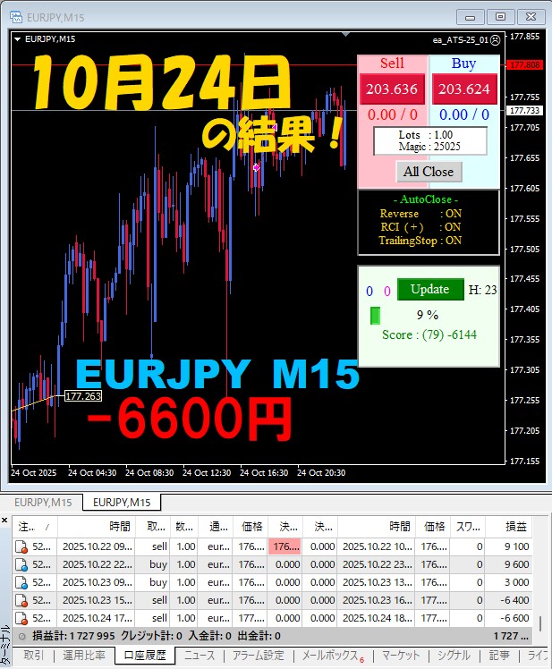 【EURJPY M15】前日の結果『ATS-25』 10月24日