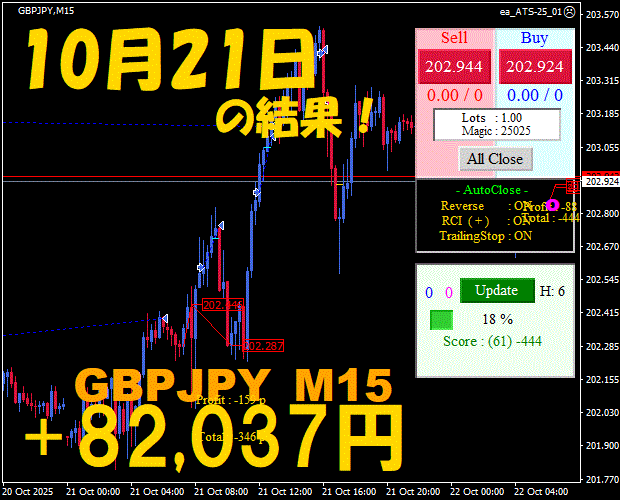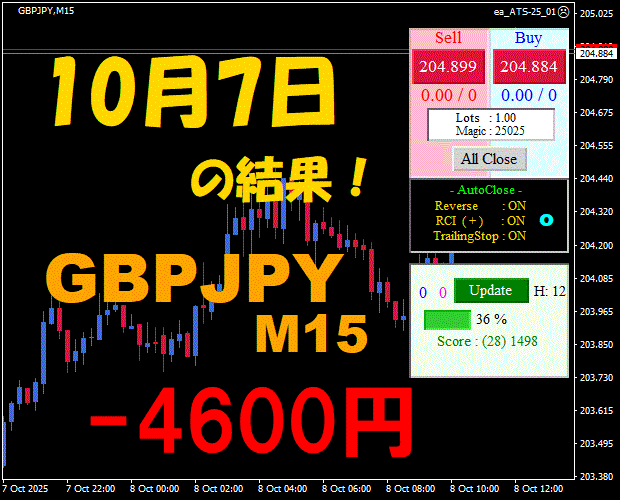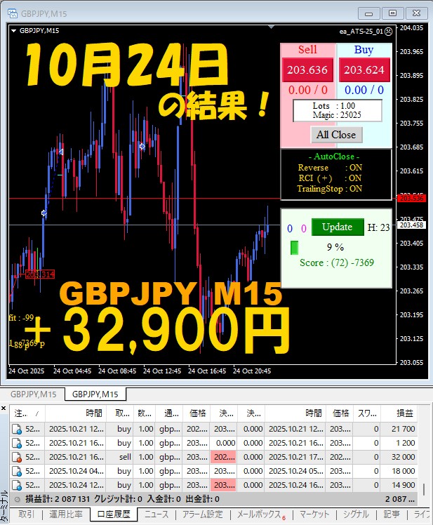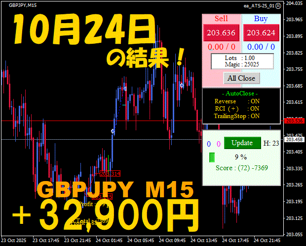 【GBPJPY M15】前日の結果『ATS-25』 10月24日
