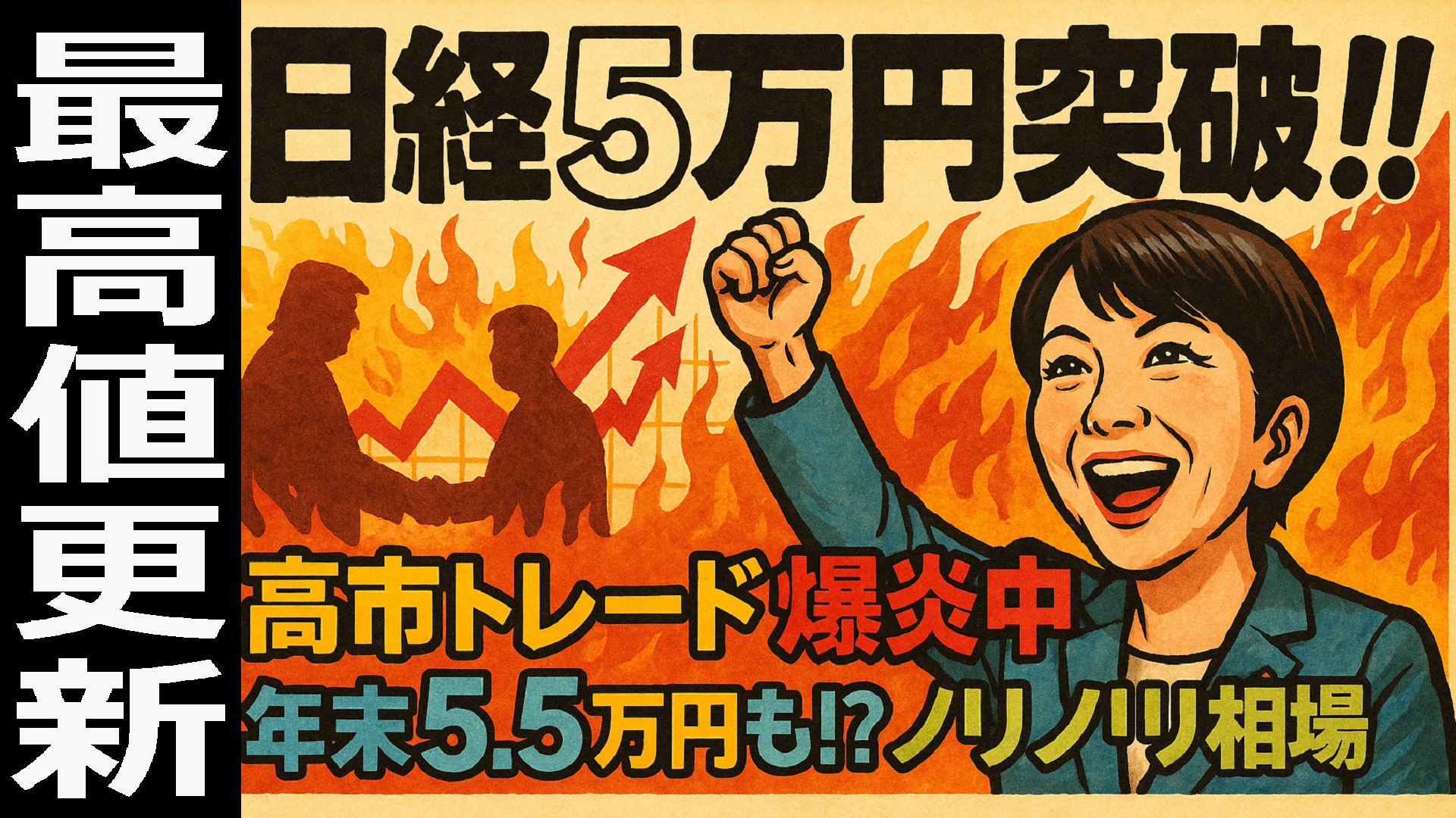 あの記事を覚えていますか?「高市総理誕生で株高、年末5.5万円も視野」と書いたのが、ほんの数日前。それがいま、現実になりつつあります。ついに日経平均は5万円を突破しました📈