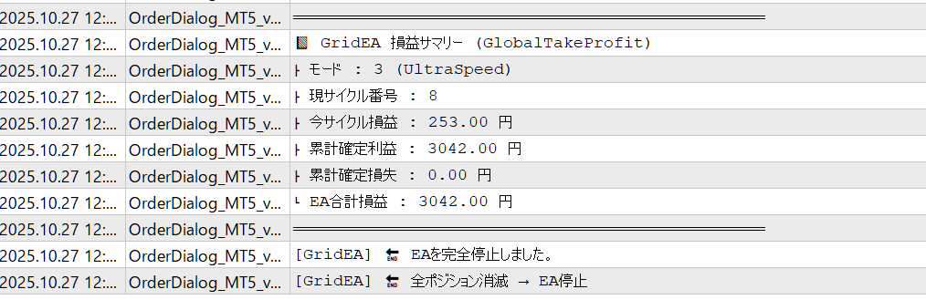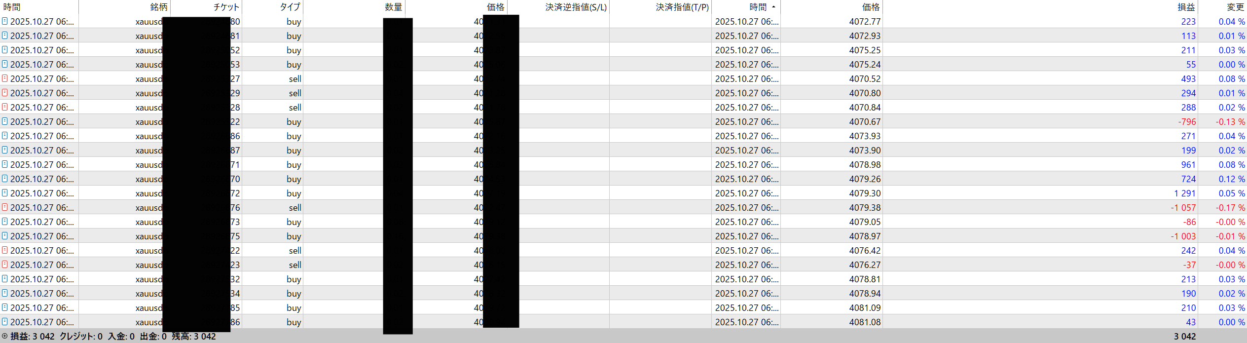 こちらは損切りなしで、3000円まで到達して自動終了していたようです。