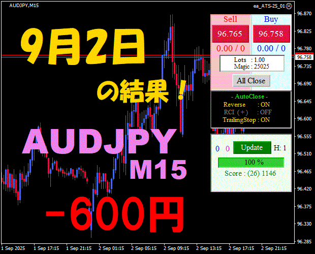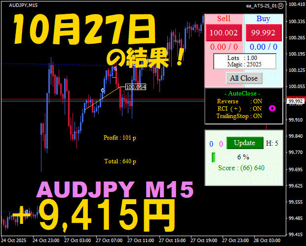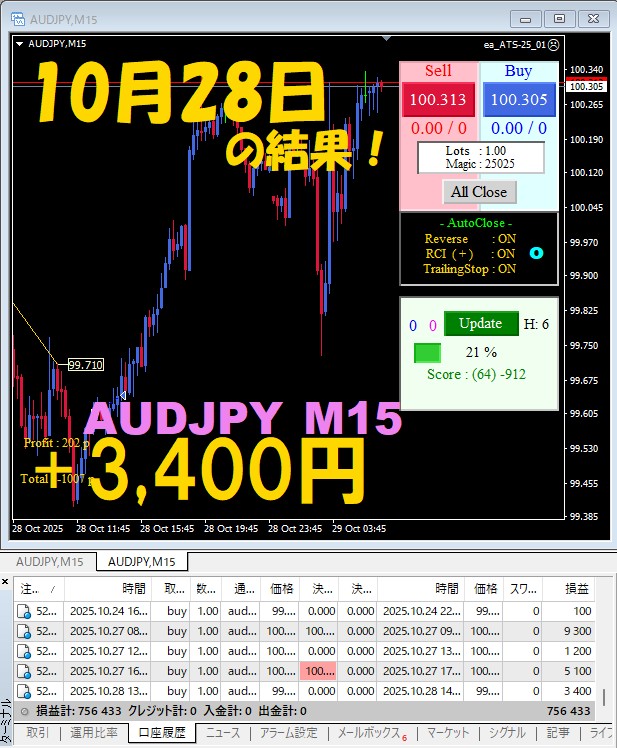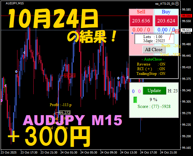 【AUDJPY M15】前日の結果『ATS-25』 10月28日
