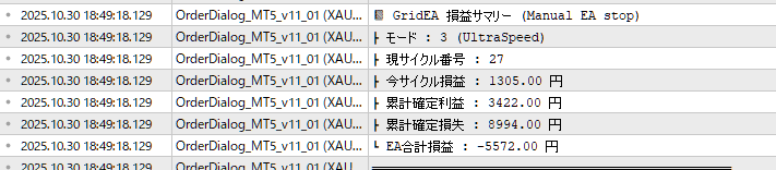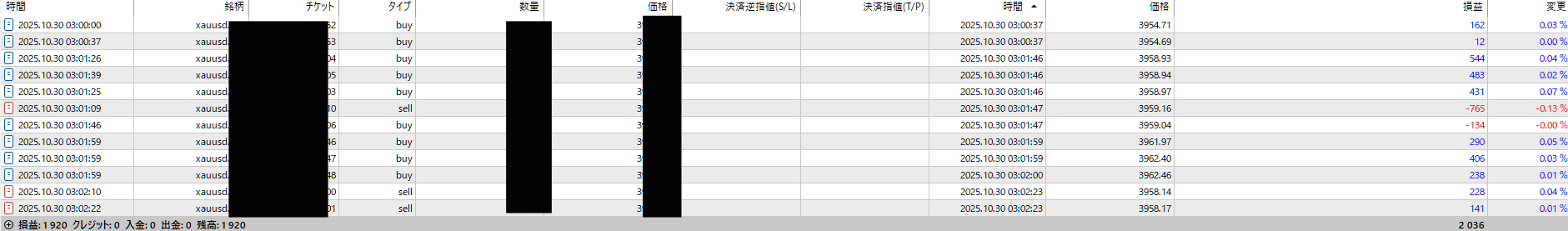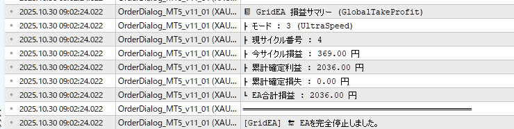 2025年10月30日 本日は朝の9時からEAを回し始めました。